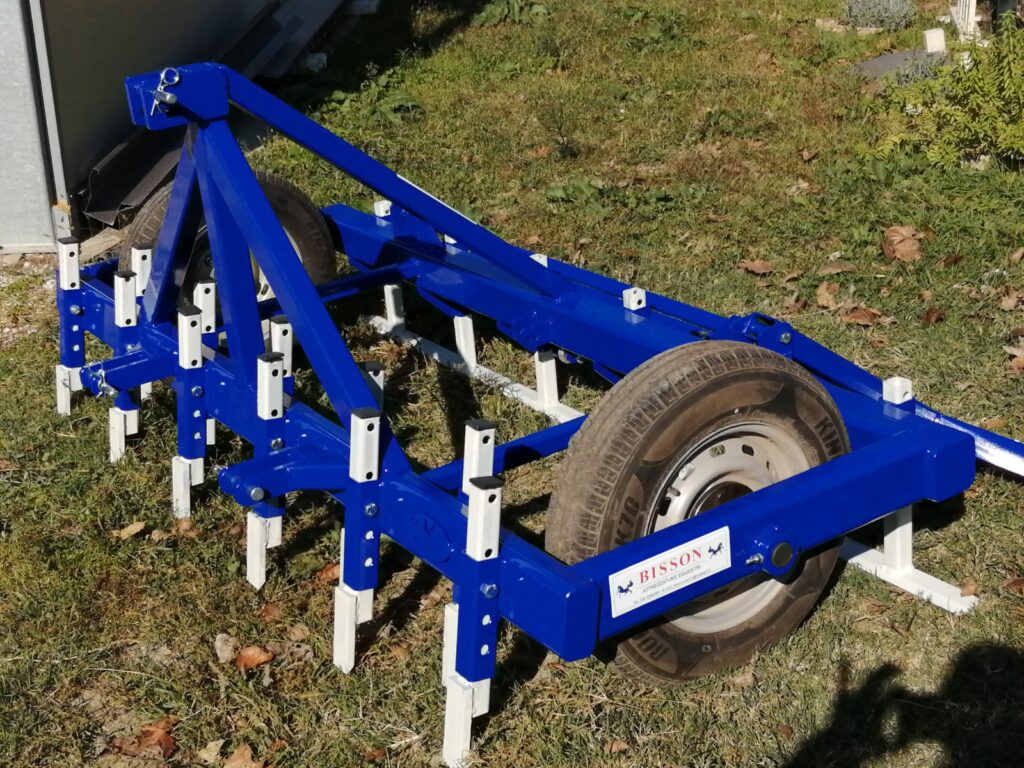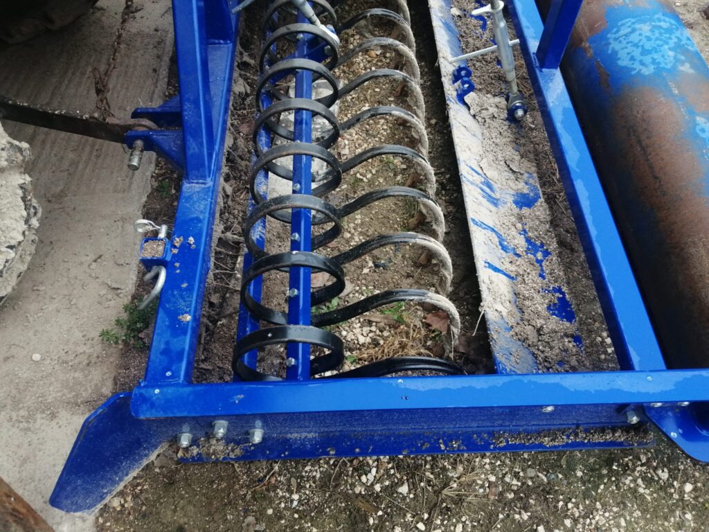 attrezzato a traino ,sostenuto da ruote con: 2 file puntali ,lama di livellazione e rottura ,lama pettine di livellazione e rottura finali